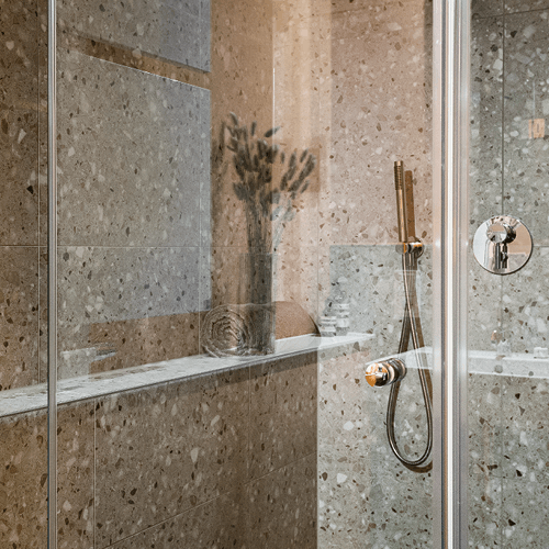 - Feinsteinzeugfliesen in Terrazzodesign