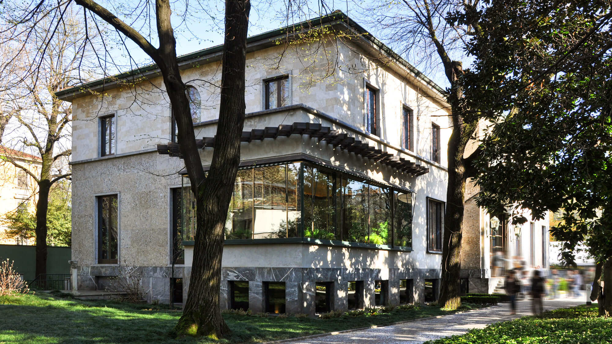 Wer den Garten der Villa an der Via Mozart betritt, spürt nichts mehr von der Großstadt Mailand. Nur wenige hundert Meter vom Zentrum der norditalienischen Metropole entfernt, befindet sich das Anwesen einer der prominentesten lombardischen Familien. Die Schwestern Nedda und Gigina Necchi und ihr Mann Angelo Campiglio, Vertreter der bürgerlichen Industriellen, gelangten in den 1920er Jahren durch die Herstellung von emaillierten Haushaltswaren und Nähmaschinen zu Ansehen und Wohlstand. In den 1930er Jahren beauftragten sie den renommierten Architekten Piero Portaluppi mit der Planung ihres neuen Wohnsitzes in Mailand.