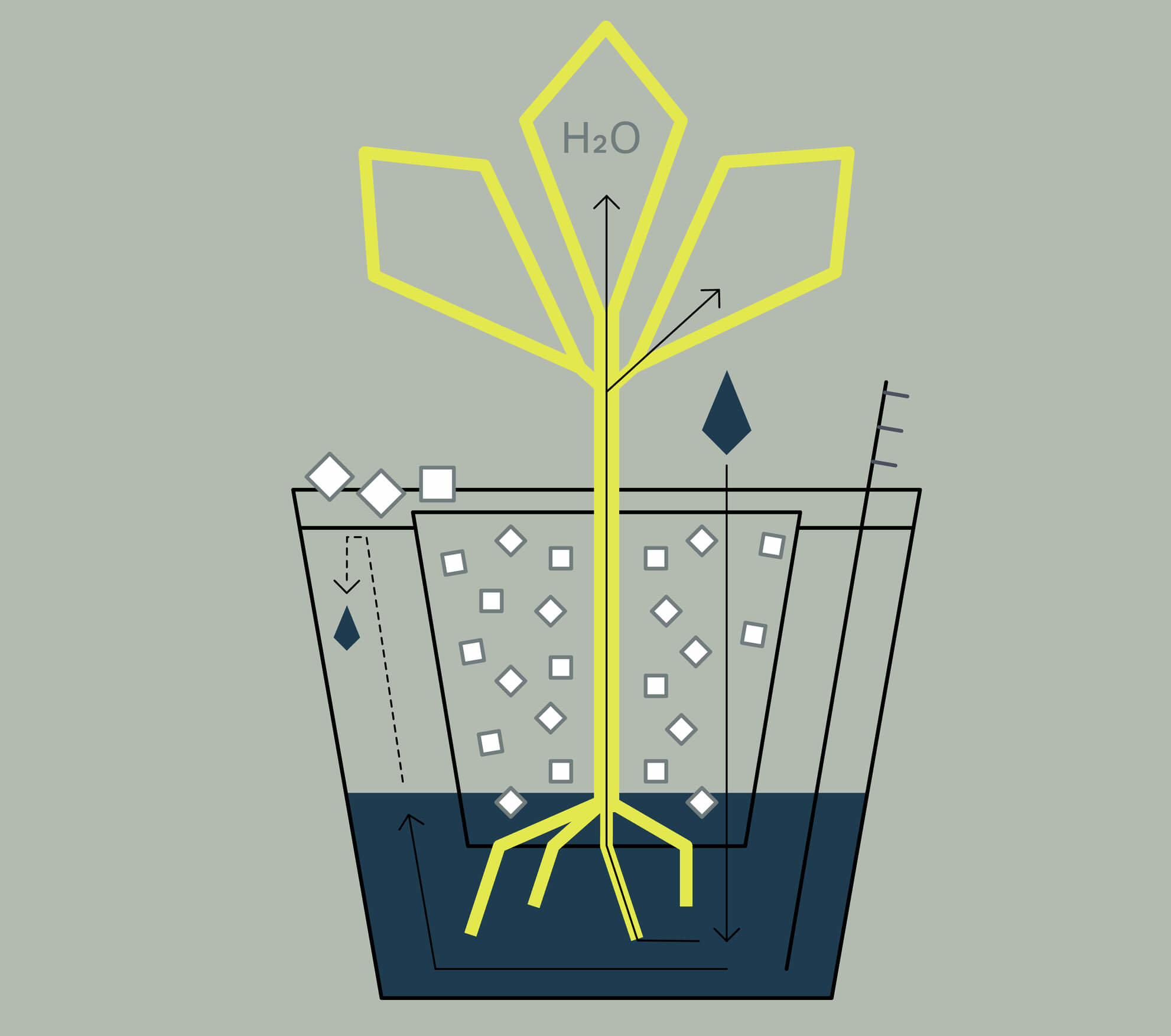 Tobias Fürst: Beim Hydro Profi Line® System sitzt eine ganz normale Baumschulpflanze mit ihrem Erdwurzelballen in einem Spezialkulturtopf mit vielen Öffnungen und hängt an einer Scheibe über einem substratfreien Wasserspeicher. Durch dieses „Aufhängen“ am Wasser, zusammen mit einer hohen Luftfeuchtigkeit im Gefäß, bildet die Pflanze verstärkt Feinwurzeln zur Wasser- und Nährstoffaufnahme und wächst aus dem Kulturtopf heraus in das Wasser. Das Faszinierende: dieses Verhalten zeigen alle Pflanzenarten, egal ob Tief- oder Flachwurzler, Rose oder Rhododendron, Strauch oder Baum, sodass unser System universell einsetzbar ist. Der Wurzelballen selber sowie das Herz der Pflanzen sind stets feucht, aber nicht nass, und gleichzeitig optimal belüftet. Umgekehrt sind Staunässe oder Wurzelverdichtung ausgeschlossen.