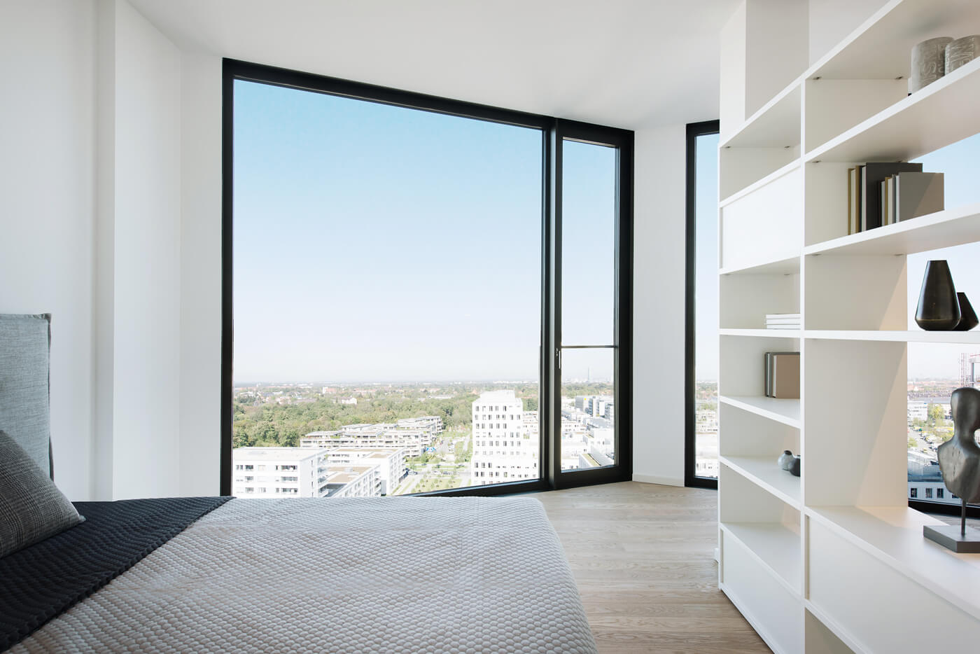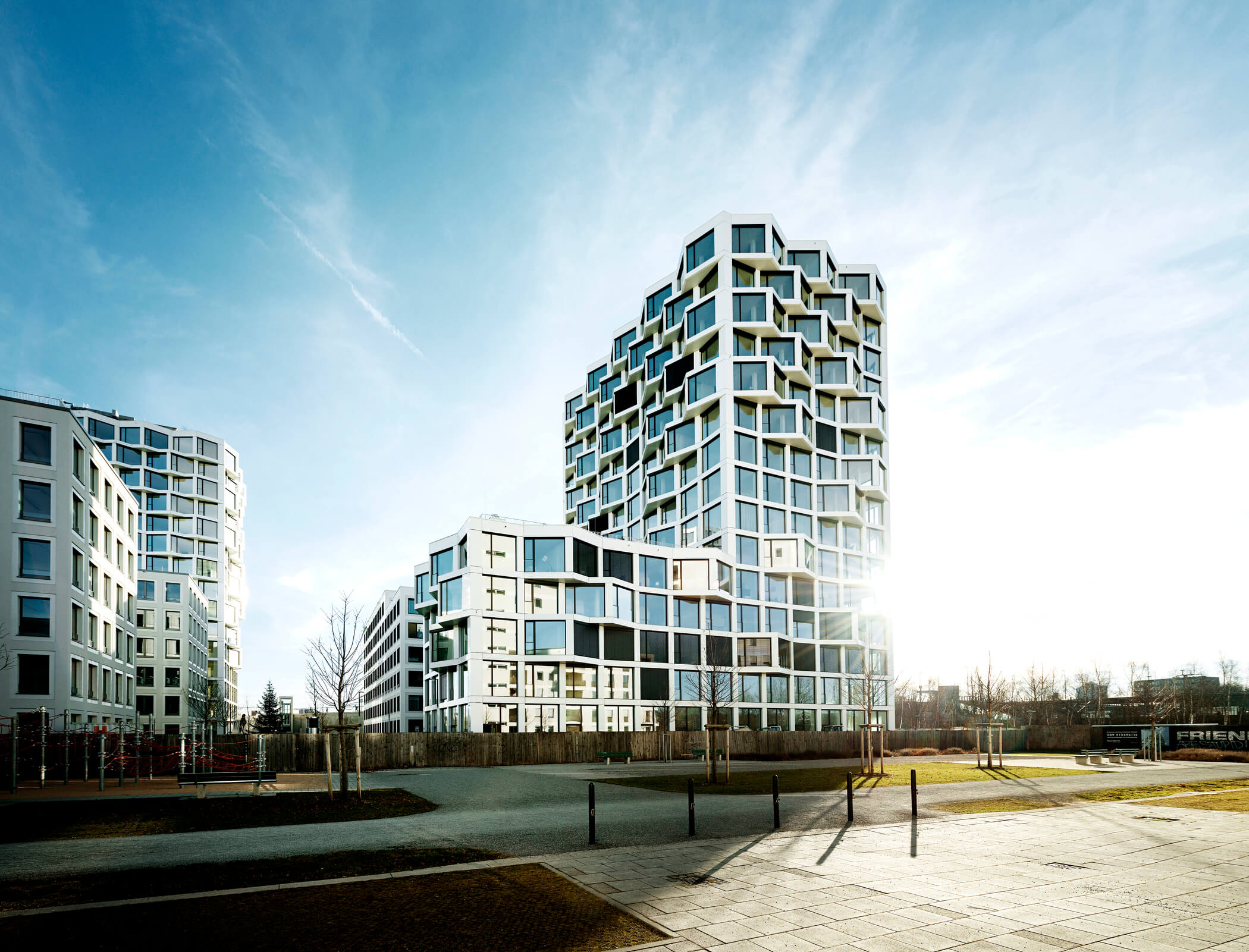 Aufsehenerregende Architektur und innovative Features: In bis zu 53 Metern Höhe genießen die Bewohner von FRIENDS die Qualitäten eines Architekturkonzepts, das auch jenseits der bayerischen Landeshauptstadt wegweisend ist.