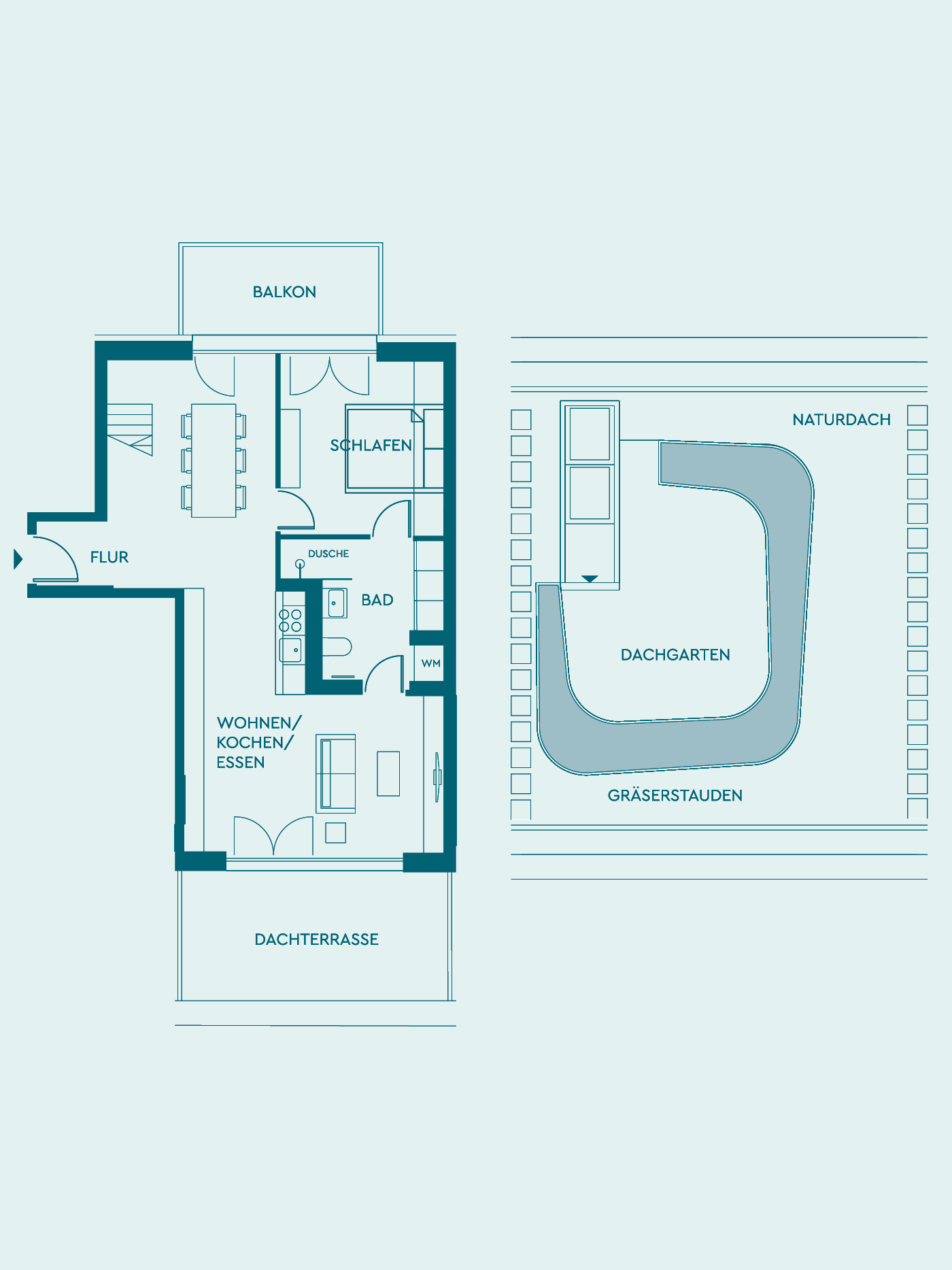 Open spaces are shared in kupa: on the community roof terrace with raised beds for rooftop farming, on the playgrounds for playing in the sand together. For the garden apartments in House E, F and G, kupa offers a lawnmower for shared use.