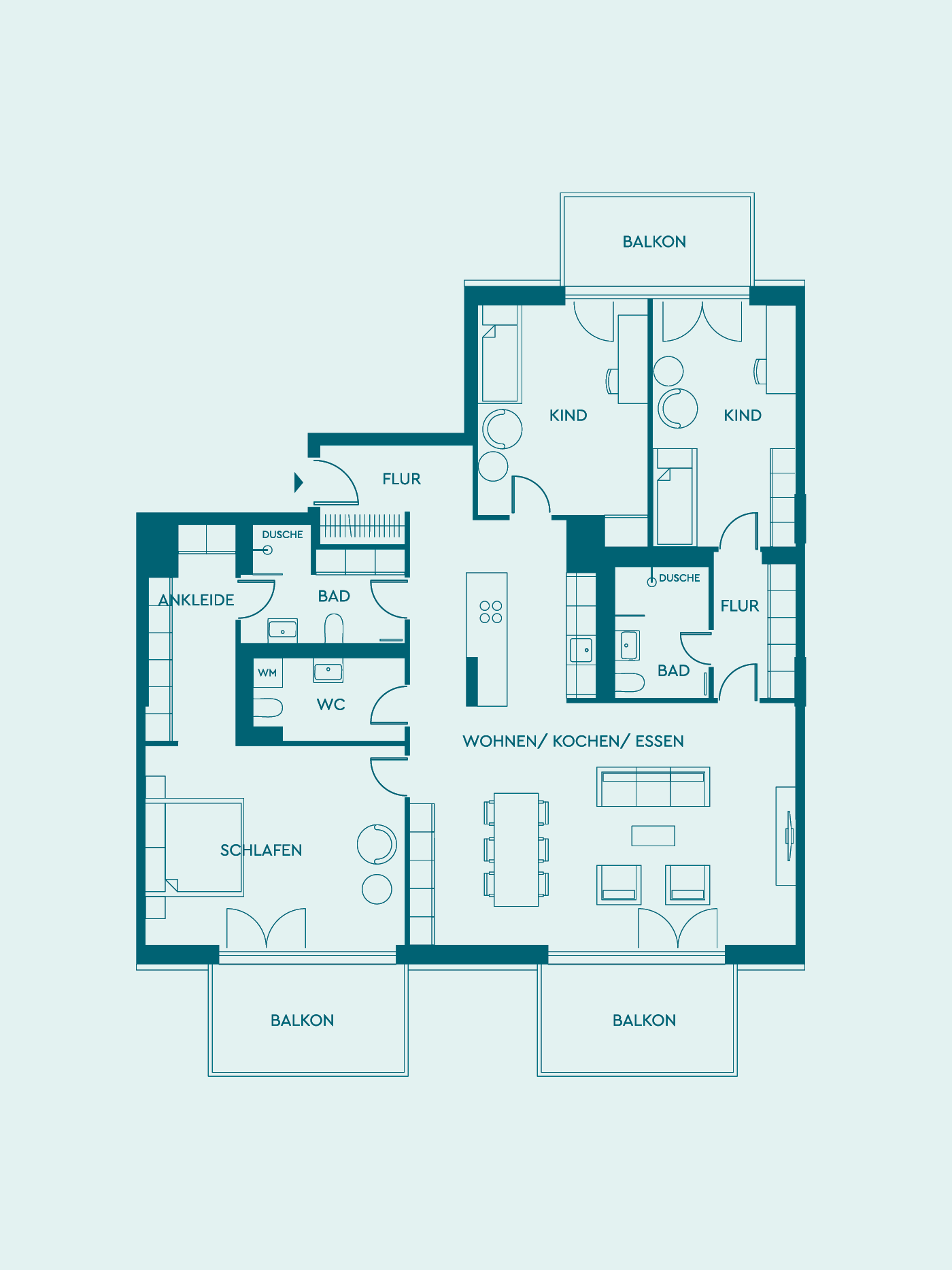 In particular, any contractual services to be provided may deviate from the details and representations on this website with regard to technical details such as living spaces or room heights. Images, floor plans and visualisations on this website are merely interpretations of the visualiser and represent only an idealised depiction of the underlying externally discernible properties of the planned buildings and outdoor areas. Consequently, where images, floor plans or visualisations show fittings of the individually held or common property, these serve solely to provide a sample, idealised depiction and shall not form part of the developer’s scope of performance, unless otherwise expressly agreed in the notarial purchase agreement and in the building specifications attached thereto. In particular, any furnishings/installations (e.g. kitchens) depicted do not belong to the developer's scope of performance. Depictions of outside areas do not form part of the developer’s scope of performance. In particular, the depictions of planting (in terms of number, position, type and size and the associated light and shade relationships) are not binding.