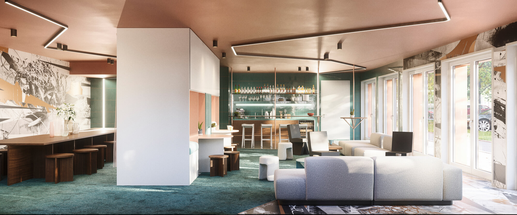 Projektentwickler Bauwerk schafft einen Co-Living-Space, der Architektur, Design und Kunst verbindet. Internationale Kollaboration mit Architekten von UNStudio Amsterdam, Interior-Designerin Stephanie Thatenhorst und dem Künstler-Duo LAYER Cake. „Third Places“ werden zum aktiven Bestandteil einer neuen Wohnkultur.