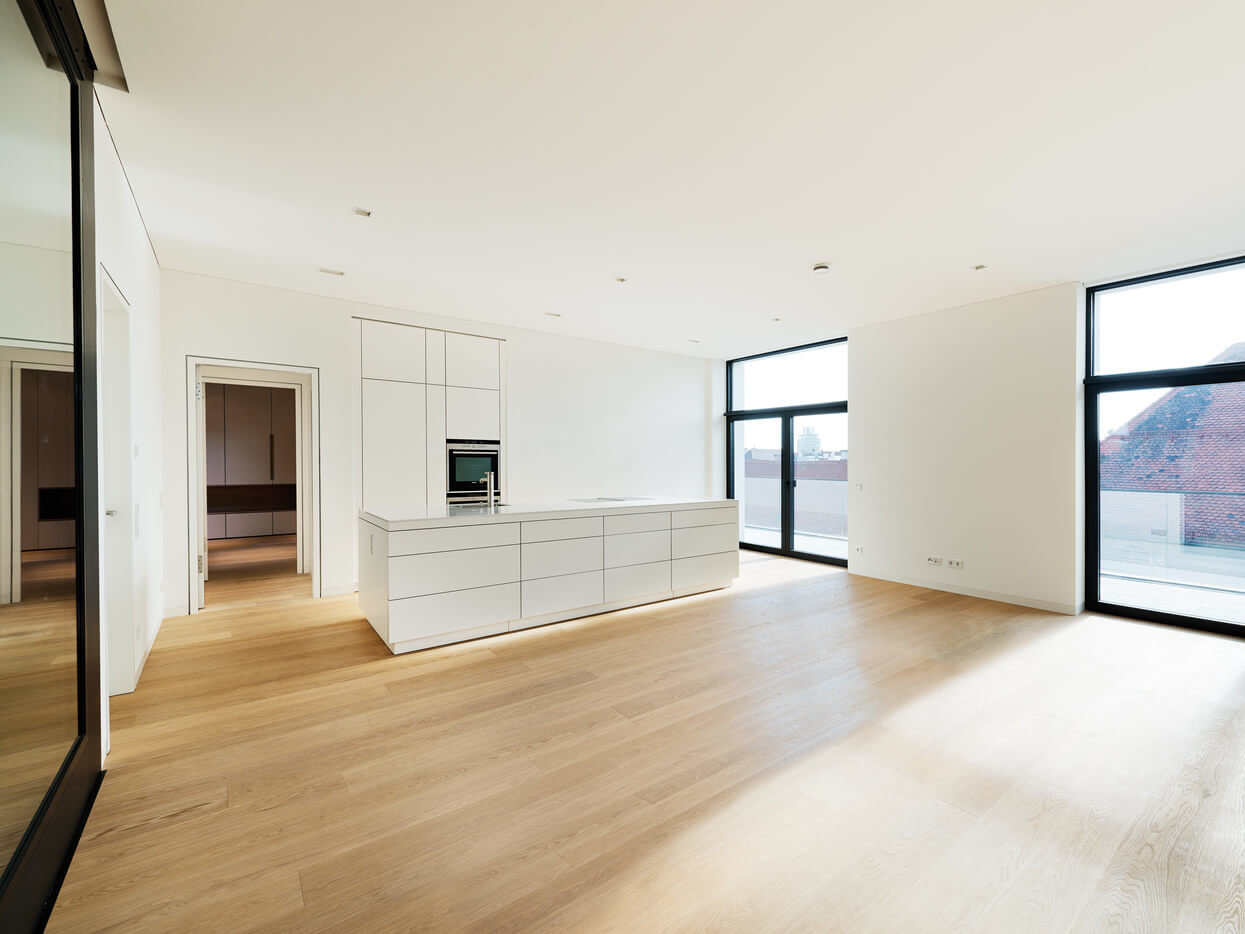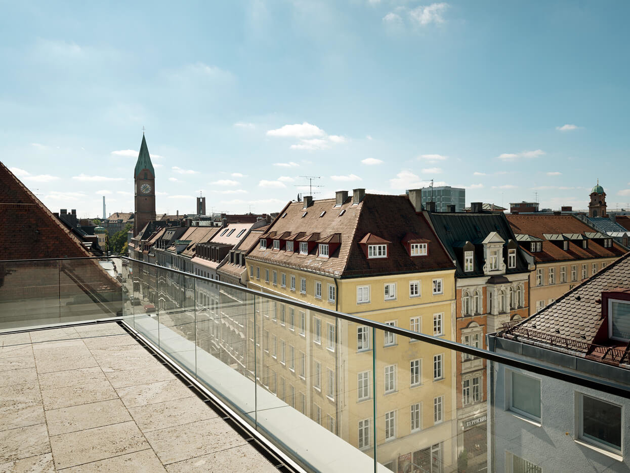 Wohnen über den Dächern der Altstadt. Inmitten der Fußgängerzone und doch privat. Das moderne Joseph Pschorr Haus in der Neuhauserstraße.