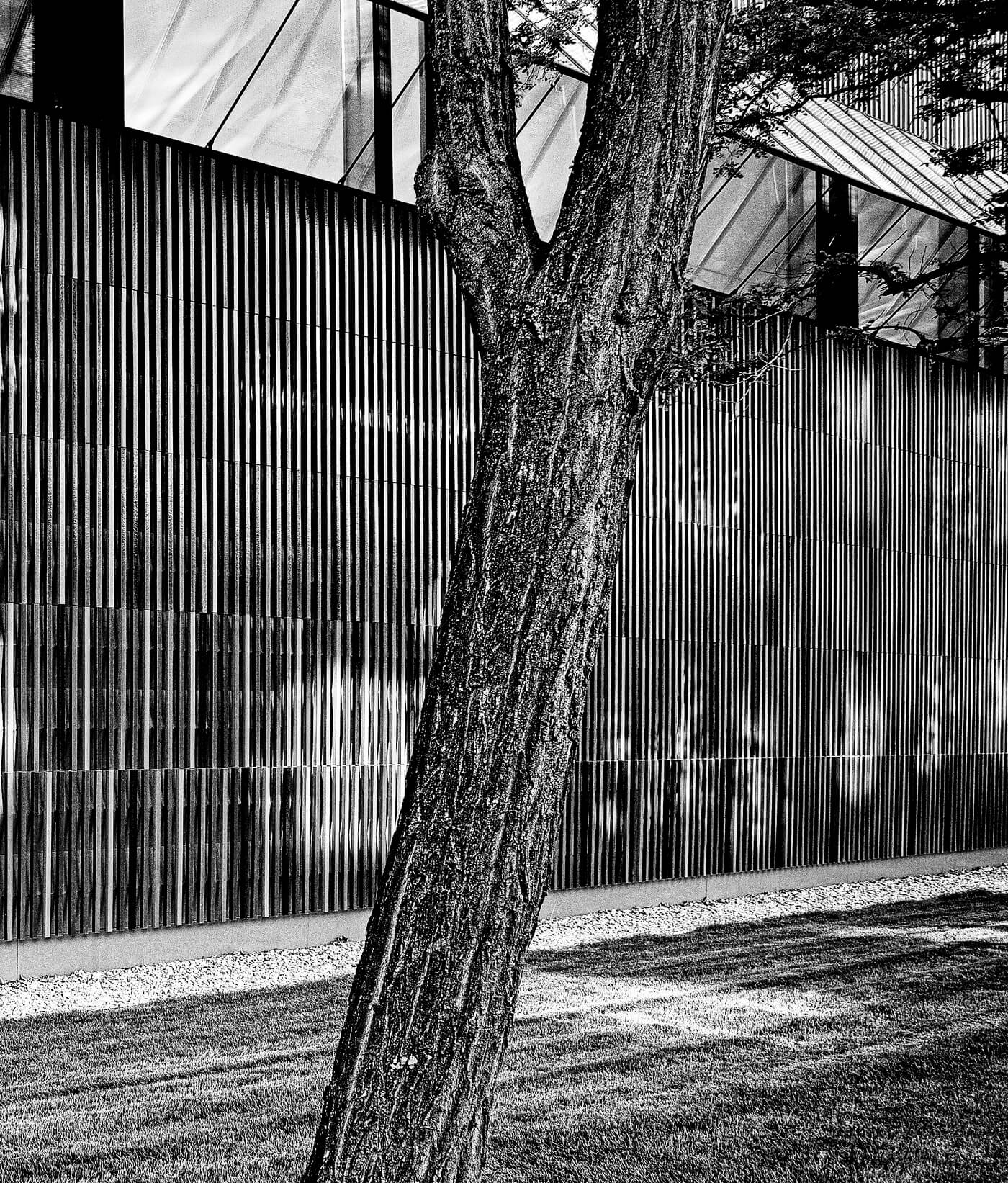Der Charme der Kaulbachstraße liegt in ihrer privilegierten Lage – und ihrem echt Schwabinger Zuschnitt. Das heißt: Sie ist nicht künstlich verbreitert worden. Das Gebäude fügt sich mit seiner unaufgeregten, subtil akzentuierten Fassade schlüssig in das historische städtebauliche Umfeld ein; rückwärtig überrascht es mit einem sich in die Tiefe öffnenden, von abgestuften Terrassen eingerahmten Garten.