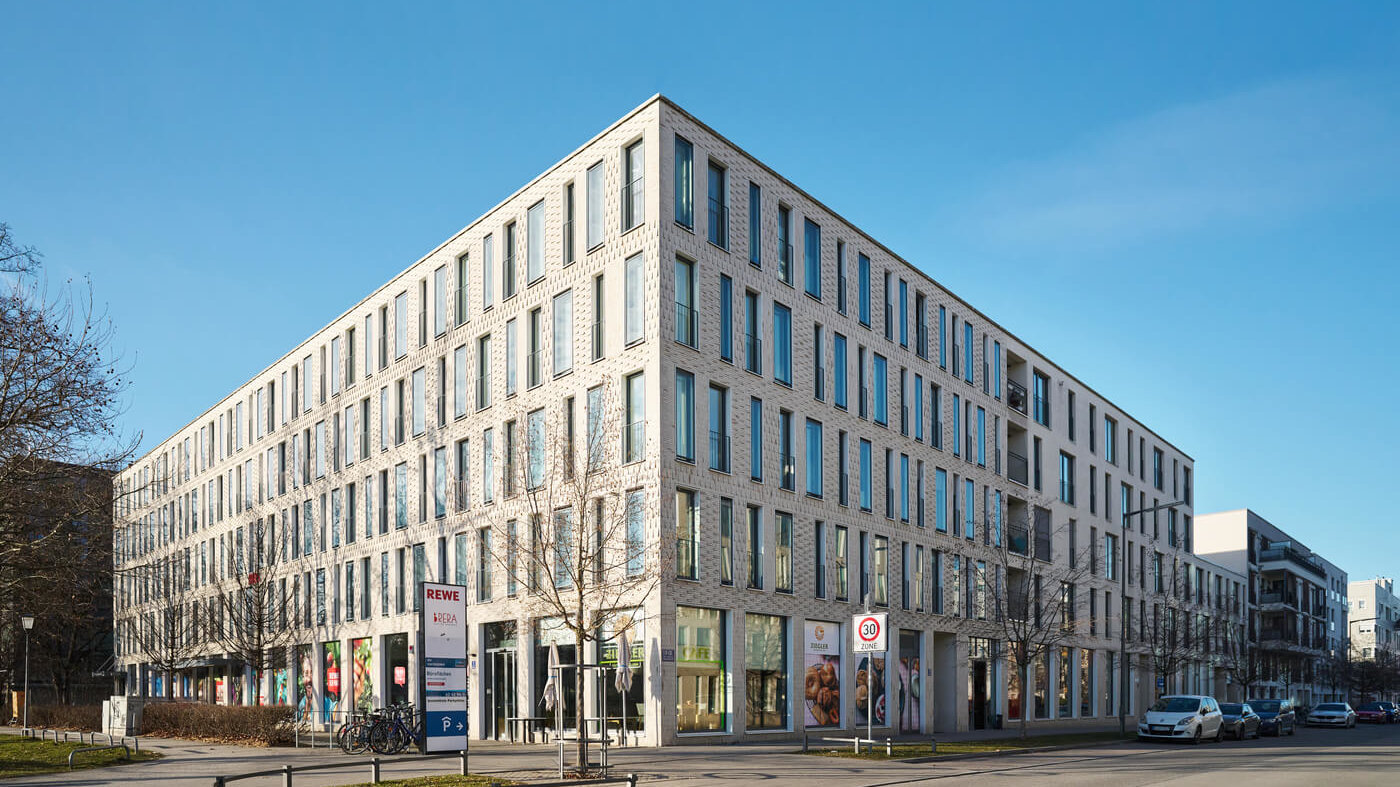 Durch seine moderne, hochwertigen Architektur zieht das markant an der Ecke Schwere-Reiter-/Petra-Kelly-Straße gelegene L-Gebäude alle Blicke auf sich. Mit einem vielseitigen Wohnungsmix und Einzelhandelsflächen im Erdgeschoss lassen sich die Vorzüge urbanen Wohnens täglich erleben.