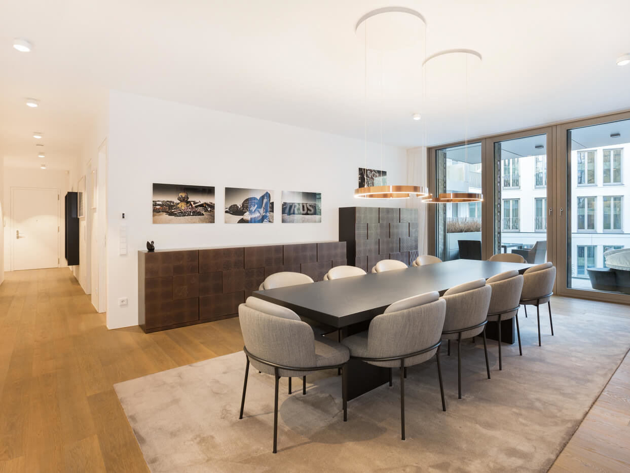 Mit ihrer subtil zitierenden Architektur fügt sich die Vorderfassade intelligent in die denkmalgeschützte Umgebung ein, während das kompromisslos moderne Rückgebäude ein ästhetisches Ausrufezeichen setzt. Der sehenswerte Innenhof schafft eine harmonische Verbindung. Mag das Äußere zwei Ausprägungen haben – allen Wohnungen gemeinsam sind offen konzipierte Grundrisse, überdurchschnittlich viel Tageslicht und eine hochwertige Ausstattung.