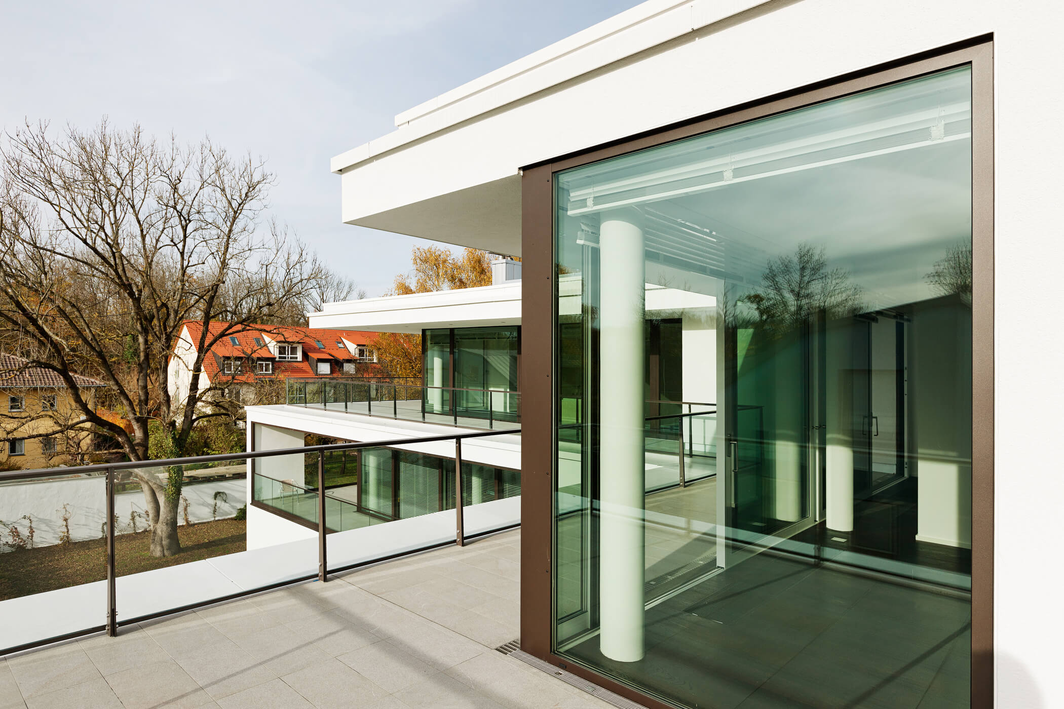 Im Geiste von Bauhaus: Der puristische Stil mit seiner klaren geometrischen Formensprache bildet dieses Neubauprojekt ein harmonisches Pendant zur großbürgerlichen Villenarchitektur Nymphenburgs.