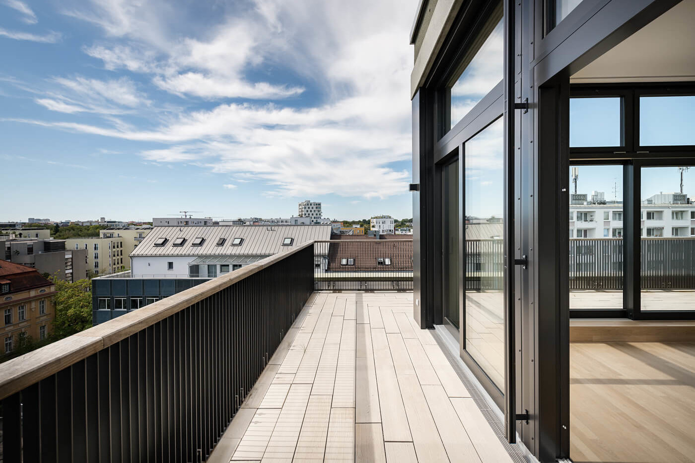 Wäre der Neubau TIVOLI GARDEN ein Theater, hätte es ausschließlich Logenplätze. Unmittelbar im Englischen Garten bietet die Immobilie viel Freiraum – innen wie außen.