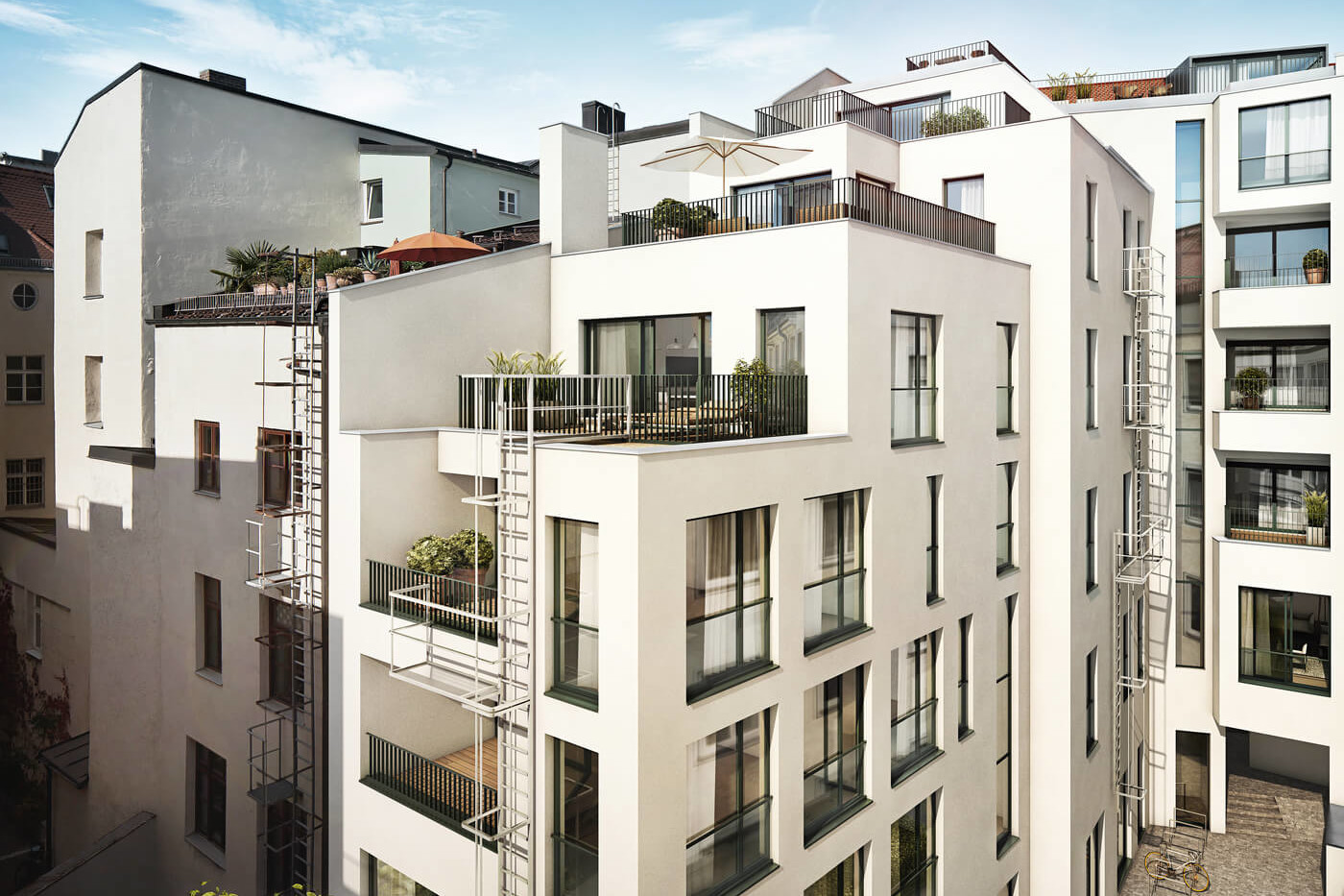 Warum immer im Mittelpunkt stehen? Warum nicht auch dort wohnen? Bei dem Neubauprojekt in der Kaulbachstraße ist Zurückgezogenheit am Puls der Stadt kein Widerspruch, sondern Wohnkultur.