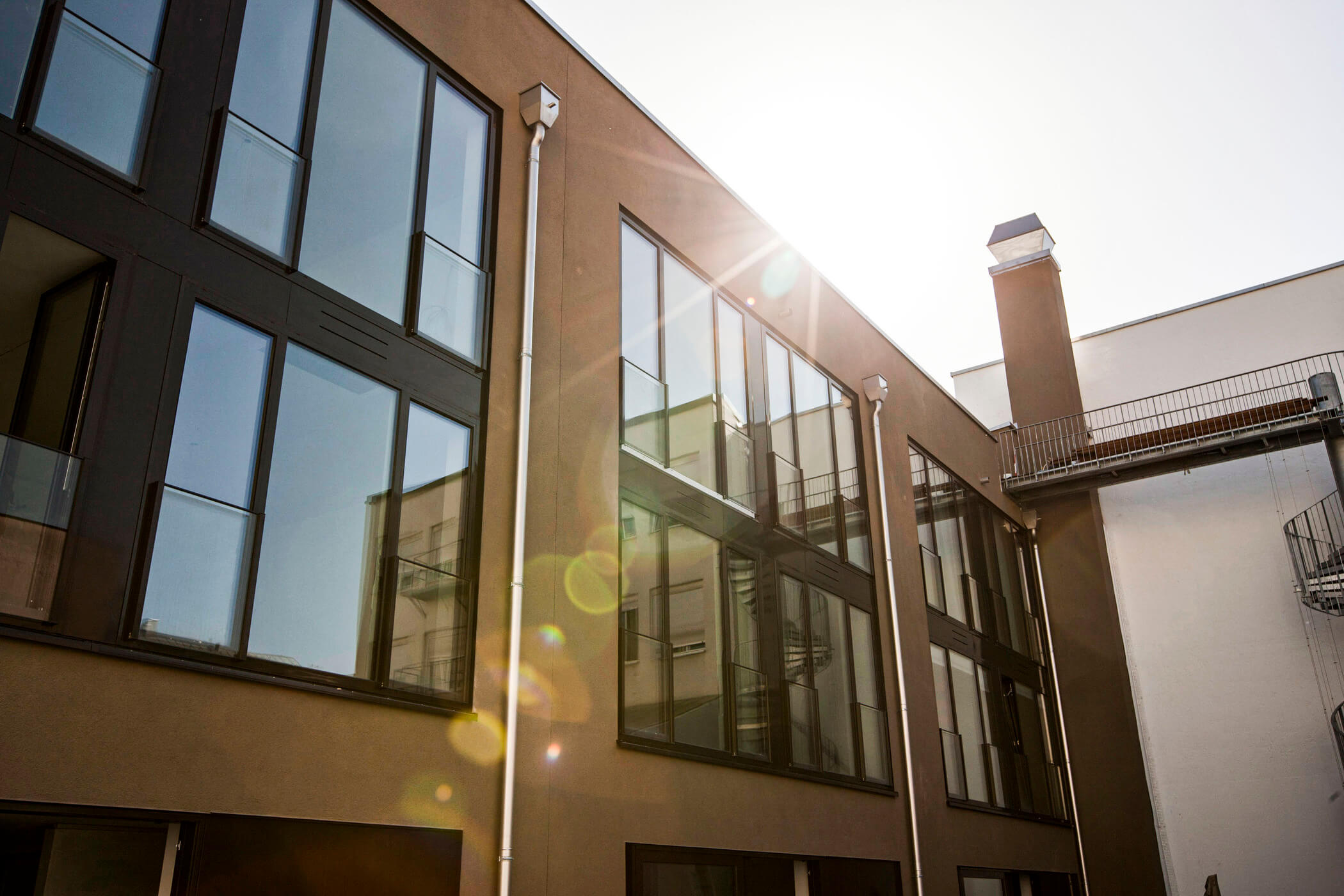 Wohnen und Arbeiten, wo das Leben Stadt findet. Die puristisch moderne Eckimmobilie zieht alle Blicke auf sich. Für Menschen, die Urbanität und Individualität schätzen.